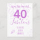 Celebrate the next decade! Make it worthy of the event it is with this fabulous, festive and fun design with hot pink purple typography, inviting all to join in the celebration of the 40 and fabulous guest of honour, personalized with her name. Hot pink or purple text on a background of muted pink streamers and confetti. Appropriate for sobriety by easily deleting the wine glass graphic. Is the guest of honour turning an age other than 40? Easily change the age by clicking to personalize it and change the Age fields.