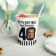 Personalize these mono 40th birthday party paper cups with your own birthday name and two photograph in the 0 of 40. Fun text and personalized photo design. Ideal for using at a fortieth birthday party to show a photo of your birthday boy or girl now and one from their past. Other matching fortieth birthday party items are available. © Original graphic art and design by Sarah Trett for www.mylittleeden.com