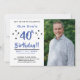 This "40th Birthday - Photo Party Invitation for Dad" is designed to gather friends and family for a special (age) birthday celebration! Just insert your favourite father's image (click 'fit' and adjust the image to the right), then personalize all your details using our easy step-by-step template. Enjoy! (Note - The age number can be changed as you like!)