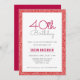 40th Birthday Faux Red Glitter Invitation