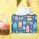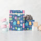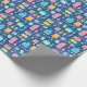 40th birthday bright pastel cakes, party hats, balloons and presents are scattered on this festive wrapping paper.