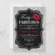 40th Birthday - Forty Fabulous Black Red Silver Invitation