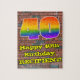 This vibrant and exciting urban street art and graffiti inspired birthday jigsaw puzzle design features a large number “40” with a colourful rainbow spectrum gradient inspired pattern, along with the message “Happy 40th Birthday,”, and a personalized name. The background has a brick wall pattern. A colourful, customizable birthday puzzle like this might be used to celebrate somebody’s fortieth birthday. [~Z0000545]