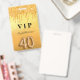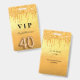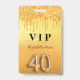 A modern, stylish and glamourous badge for a 40th birthday party. A fauc gold metallic looking background with faux glitter drip, paint dripping look. The name is written with a modern hand lettered style script. With the text: VIP Number 40 is written with a balloon style font, script.