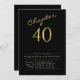 40th Birthday Gold Modern Script Black Invitation