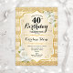 40th Birthday - Gold Stripes White Roses Invitation