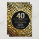 40th Birthday Invitation Black and Gold Glitter