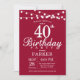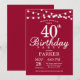 40th Birthday Invitation with String Lights. Burgundy Red Background. 13th 15th 16th 18th 20th 21st 30th 40th 50th 60th 70th 80th 90th 100th, Any age. For further customization, please click the "Customize it" button and use our design tool to modify this template.