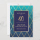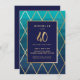 This elegant and trendy 40th birthday celebration invitation can be customized for your special occasion. It features a gold (simulated foil) frame and gold geometric lines in the background as well as a blue ombre watercolor style wash. Within the gold frame is a navy blue background box. "40" is in a stylish script font. A perfect invite for a milestone birthday.