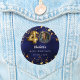 Navy blue uneven coloured background, decorated with golden stars. Personalize and add a photo, name, age, date.