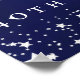 A welcome poster for a feminine and glamourous 40th birthday party. A navy blue background decorated with faux silver stars. The blue colour is uneven. Personalize and add a photo and name. Number 40 is written with a balloon style font.