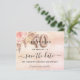 A girly and trendy Save the Date for a 40th birthday party. A blush pink, rose gold gradient background decorated with blush pink florals and pampas grass. Personalize and add a date and name/age. The text: Save the Date is written with a large trendy hand lettered style script. Number 40 is written with a balloon style script.