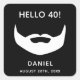 For a 40th birthday party for guys in black and white. With the text: Hello 40! With an image of a beard. Personalize and add a name and date.