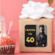 A trendy 40th birthday party sticker. With the text: Cheers to 40 on front written with faux gold balloon letters. Black background. Template for your photo.