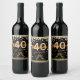 Glamourous and elegant 40th birthday party wine label. Black background colour. Two sparkling wine glasses, flutes and faux golden diamond sprinkle as decor. Templates for a name, age 40 and date, golden letters