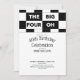 Invite your friends and family to a fun 40th birthday party with cool, modern, customizable invitations. The fortieth milestone birthday celebration invite features a bold black and white chequered pattern at the top with the words "The Big Four Oh" in alternating white on black and black on white text. The bottom 2/3 of the flat card shows the words "40th Birthday Celebration" in black text on a white background. Customize the name, date, and party details in the sidebar. The back features a classic black and white chequered pattern.