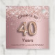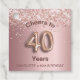 A girly and trendy favour tag for a 40th birthday party. A feminine pink, blush pink faux metallic looking background decorated with glitter dust and number 40 written with a rose gold coloured balloon style font on the front. With the text: Cheers to. Personalize and add a name or text.