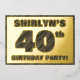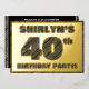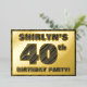 The front of this bold fortieth birthday celebration foil invitation card features a personalized name, a large number “40th”, the message “BIRTHDAY PARTY!”, and a border, all featuring a rustic, yet sophisticated, faux wood grain appearance inspired pattern. The back features personalized details about the event, such as the date, time, location, and any other important information. Editable invitations like these might be used to invite attendees/guests to a birthday party/gathering being held in celebration of somebody’s 40th birthday. [~Z0000595]