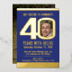 Bold simple graphic Say Cheers with beers dark blue, and gold foil or your own foil colour photo template 40th birthday party invitation. Personalize this milestone birthday invitation with your own birthday party event details, and a photos of your birthday boy or girl in the centre of the 0 in 40 and one full bleed out photo on the reverse. Other years colours and matching items are available. © Original design by Sarah Trett for www.mylittleeden.com on Zazzle.