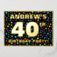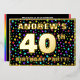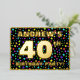 The front of this fun and upbeat fortieth birthday celebration foil invitation card design features a personalized name, a large number “40th”, the message “BIRTHDAY PARTY!”, and a border. The background of the front features an eye-catching, colourful starfield pattern. The back features personalized details about the event, such as the date, time, venue, and any other relevant information. Customized invitations like these might be a fun way to invite guests/attendees to a birthday party being held to celebrate somebody’s 40th birthday. [~Z0000600]