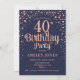 40th Birthday Party - Navy & Rose Gold Invitation