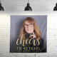 This custom 40th birthday tapestry features the guest of honour's personalized photo, name, and birthday, along with the word "Cheers" in elegant gold-coloured calligraphy script. A dark screen helps make the text pop. A great way to celebrate someone who's turning forty!