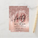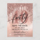Modern 40th birthday party save the date postcard. Design features rose gold faux glitter & foil background with sparkly glitter drops and typography script ''forty''. Personalize with a date & name.