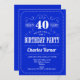 40th Birthday Party - Royal Blue White Invitation