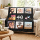A gift for a woman's 40th birthday, celebrating her life with a collage of 8 of your photos. Templates for a name, age 40 and a date. Date of birth or the date of the anniversary. White and grey coloured letters. Black coloured background.