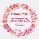 Thank your guests in the sweetest way with this Thank You sticker. It looks great on favours and cards. Girly girls of all ages will love this feminine design. Pretty pink watercolor roses and whimsical swirly hearts create the perfect 40th birthday design for a February or Valentine's Day birthday. Candy and macarons add to the sweet design. The softest pink watercolor wash frames the text and graphics perfectly. All of the text is editable, so you can carefully craft your message of thanks. This item is part of the Pink Rose and Swirly Heart collection. You can easily choose your theme and then create a unique invitation suite, welcome signs and additional supplies and decorations.