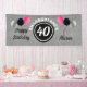 Surprise her with this 40th Birthday Pink Silver Glitter Personalized Banner. It is designed with silver faux glitter background and black, pink and white balloons. The text is "Happy Birthday" followed by name in calligraphy script lettering and the funny saying "Oh Lordy! She's 40" on the centre.