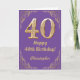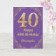 40th Birthday Purple and Gold Glitter Frame. For further customization, please click the "Customize it" button and use our design tool to modify this template.