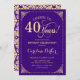 40th Birthday - Purple Gold Damask Invitation