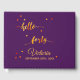 Elegant and modern guestbook for a 40th birthday party.  Purple backdrop and faux gold text written with a trendy hand-lettered style script: hello forty. With golden dots as decor. Templates for name and date, golden letters. You can change the background colour to match your theme. Click customize and then "select a background colour" on your right.