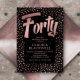 Start the party on paper with this bold, funny adult 40th birthday invitation design. The bold, humourous typography and festive confetti in rose gold on black give this invitation a classy yet humourous vibe. Perfect for the woman who likes to be the centre of the party. Order your printed invitations or download your digital invitations now for a day they'll never forget!