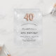 A modern, stylish and glamourous invitation for a 40th birthday party. A faux silver looking background, decorated with glitter dust. Personalize and add your name nad party details. Number 40 is written with a gold balloon style font, script.
