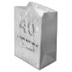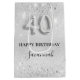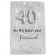 Elegant, classic, glamourous 40th birthday party. A silver looking background. Decorated with sparkles. Personalize and add a name. With the text: Happy Birthday. The name is written with a modern hand lettered style script. Number 40 is written with a balloon style font.
