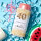 For an elegant 40th birthday party. A chic white background. Decorated with faux gold glitter, sparkles. Personalize and add a name. The name is written with a hand lettered style script. Number 40 with balloon style font.