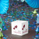 Personalized 40th Ruby wedding anniversary gift/ favor box with red heart balloons.
