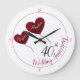 40th Ruby wedding anniversary red heart balloons Large Clock