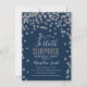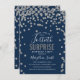 Elegant 40th Birthday Surprise Party Silver Navy Blue Glitter Confetti template.