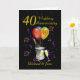 A stylish 40th wedding Anniversary card. This bright coloured card features a bottle of fizz, ice bucket flute glasses, balloons and confetti all on a black background with gold coloured text. A lovely card to give to family and friends to give congratulations to the happy couple on their 40th wedding anniversary. Can be customize for any year and title then personalize by amending the names and the message inside which currently reads "Happy Anniversary Congratulations on completing 40 years of love together. What a lovely couple you make!.". Background colour can be changed if needed, just click on the personalize further button.