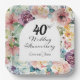 40th Wedding Anniversary Elegant Script Floral Paper Plate