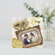 Create your own commemorative invite with this beautiful design featuring an antique gold, heart-shaped locket for your individual photos, and a gorgeous baroque picture frame for your couple or group photo. A vintage scroll paper holds your custom names and event. Replace the sample photos and text with your own for a personalized design. Perfect for wedding anniversary celebrations.