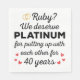 'Ruby? We deserve Platinum for putting up with each other for 40 Years' quote for a couple who got married 40 years ago or a couple renewing wedding vows on their ruby anniversary.