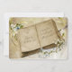 Vintage book with quill pen and flowers for vow renewal invitation celebrating 40th anniversary.