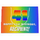 This joyful and fun birthday giftbag design features a large number “41” having a colourful rainbow spectrum inspired gradient pattern. It also features the message “HAPPY 41st BIRTHDAY,”, and a custom recipient name. The background also features a cheerful multicolored rainbow spectrum inspired gradient pattern. Personalized birthday themed gift bags like this might be a fun way to wrap gifts or presents being given to celebrate somebody’s 41st birthday. [~Z0000577]
