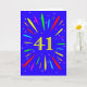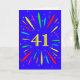 An explosive 41st birthday card! What a wonderful way to send birthday greetings. The number 41 in bright yellow with an explosion of bright colours and stars.