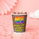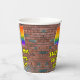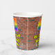 This exciting and fun urban street art and graffiti themed birthday paper cup design features a large number “41” with a colourful rainbow spectrum gradient inspired pattern, along with the message “Happy 41st Birthday,”, and a customizable name. The background features a brick wall pattern. Colourful, vibrant paper cups like this might be fun to have at a birthday party/celebration being held to honour somebody’s forty first birthday. [~Z0000543]