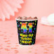 This exciting and joyful birthday-themed paper cup design features a large number “41” having a rainbow spectrum gradient inspired pattern. It also features the message “Happy 41st Birthday,”, and a customizable name. The background features a multicolored pattern having many star shapes with different sizes and colours. Colourful, vibrant paper cups like this might be fun to have at a birthday party/celebration being held to celebrate somebody’s 41st birthday. [~Z0000540]